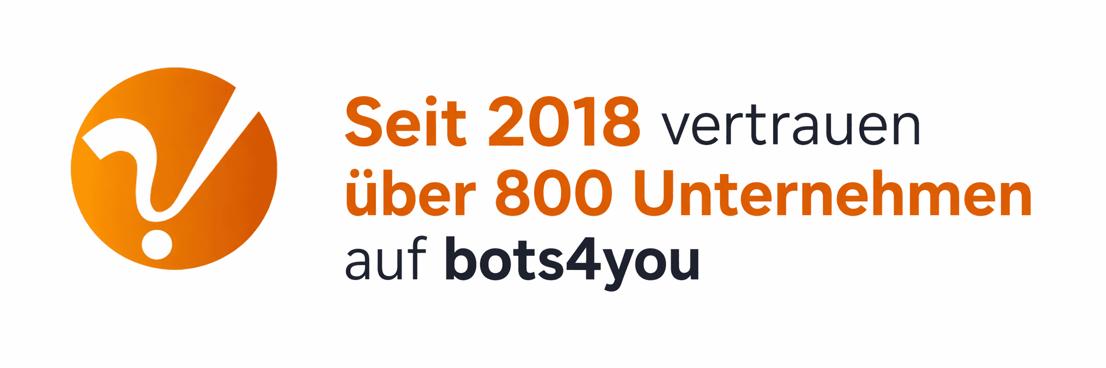 Bots4You ist seit über 8 Jahren am Markt aktiv. Unsere Lösungen werden direkt und über Partner in rund 800 Kundenorganisationen genutzt.